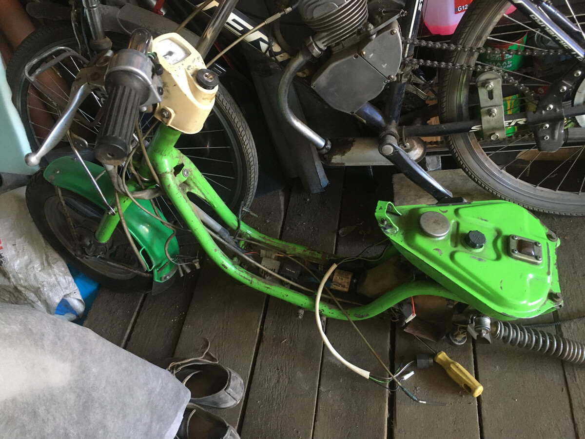 Всем привет, решил этот год открыть с началом нового восстановление не советской техники советских времён. Давным давно товарищ с этого форума предложил мне обменять восстановленную ригу 13 (есть статья тут) на японские мопеды. Я конечно же согласился, было очень интересно повозиться с ними. Но в силу их испорченности я бы не потянул восстановление двух. Принял решение один продать, а на эти деньги восстановить второй. Запчастей конечно же на них найти почти не реально или очень дорого, поэтому придётся много чего делать заново. Начал я конечно же с разбора этой ускоглазой лягушки)
