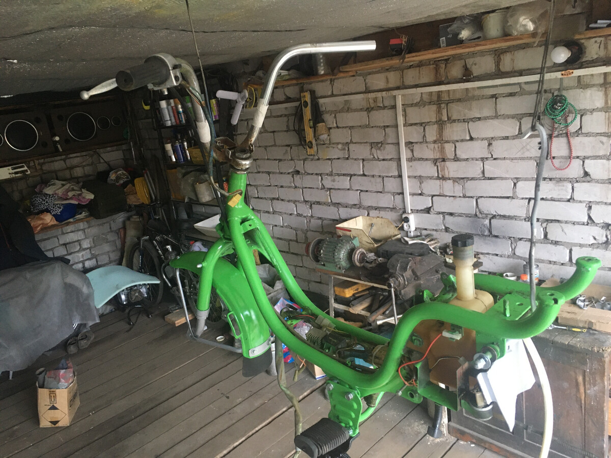 Сами треугольные крышки буду делать с нуля из стеклоткани, так же далее по плану замена втулок вилки, подшипников и восстановление проводки. Так же буду искать поршень с кольцами подходящие +- сюда. А и самое главное не сказал, почему выбрал этот экземпляр - он заводится и работает довольно неплохо, но тяги очень мало. Продолжение следует...