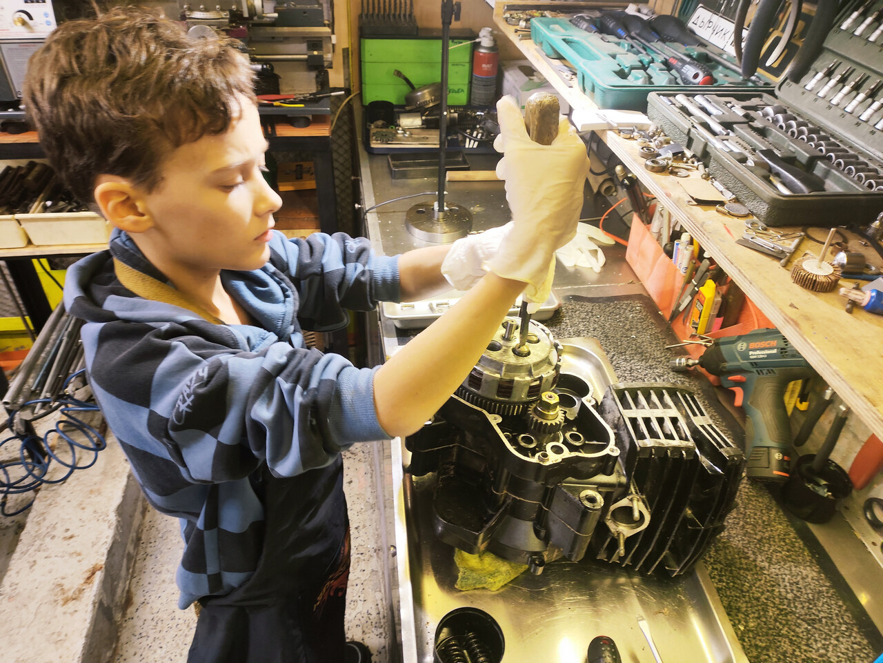Но как же так быстро удалось собрать мотор, у которого в ЦПГ и КШК полный сталинград? Ну, теоретически, если все детали были бы в наличии, то работы там на полдня, я этих моторов собрал уже шесть штук, и на очереди седьмой. Но на тот момент всё было гораздо проще, у меня был собран запасной мотор целиком