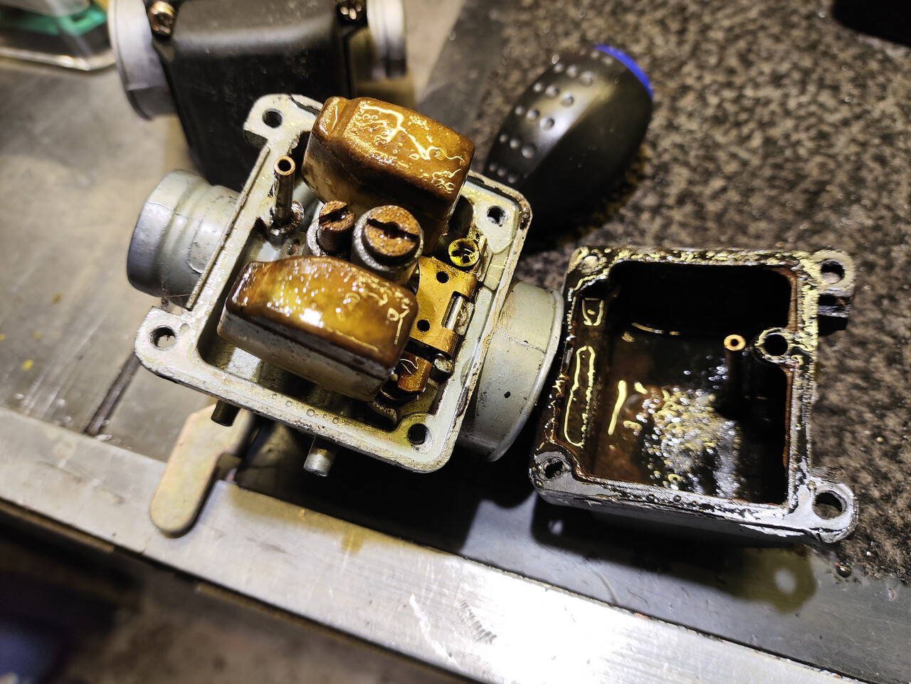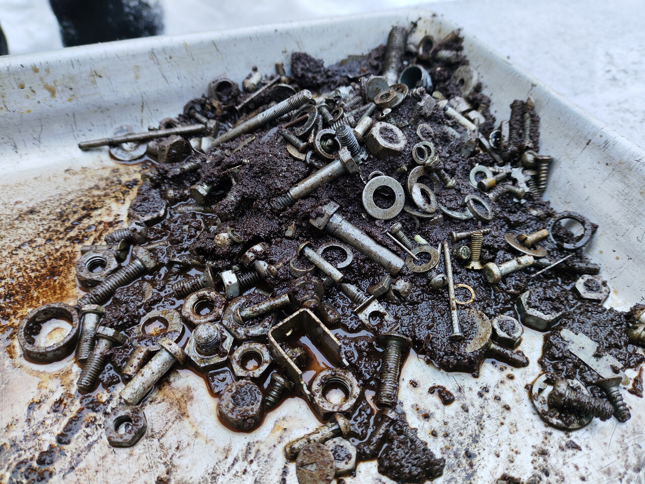 А это я закинул в бензобак крепежа с целью механической очистки тряской. Ну вы поняли, тут одними прыжками с бубном не отделаться, буду травить лимонкой. Впрочем, для Пилотовских бензобаков это норма, наряду с проссавшими кронштейнами крепления.