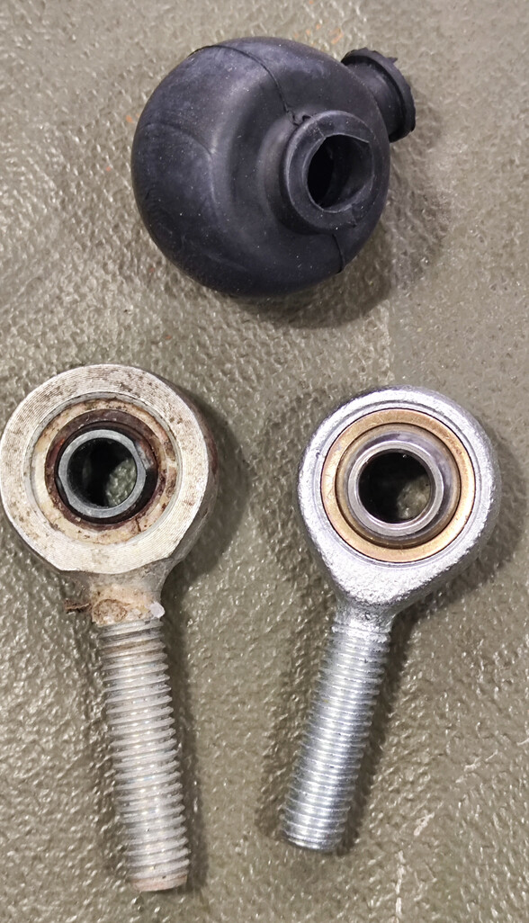 Поначалу думал перевести на тяги от квадриков, с полноценными шаровыми. Есть похожей длины, подогнать не проблема. Но их не бывает под М8, а пересверливать ответные части в раме и рулевой не очень хотелось. И деталь ослабит, и вандализм лишний. Решение нашлось, но об этом позже.