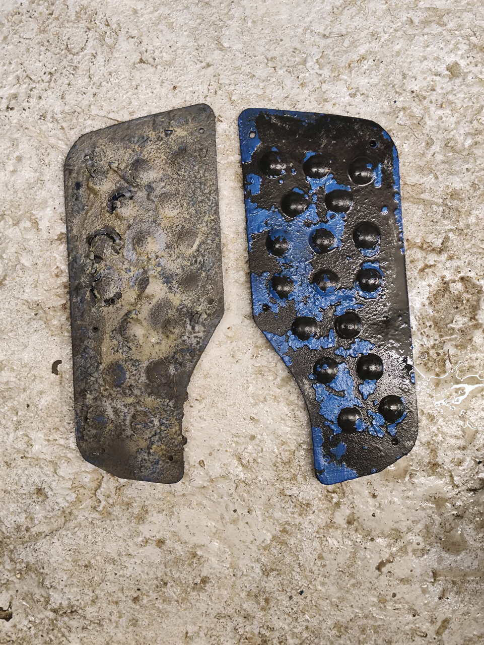 - Думал поначалу, что выпуклости на платформах для ног это выштамповки, ан нет, это резинки. Просто под тем же сантиметровым слоем краски. Посмотрим, возьмёт ли смывка.
