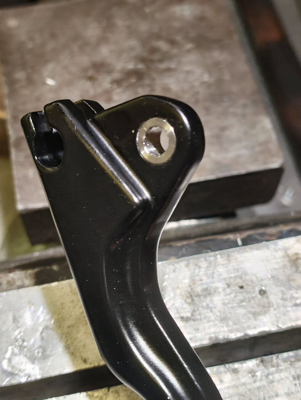 Втулка тоже из нержавейки и запрессована в развёрнутое до нужного диаметра отверстие. Теперь рычаги не имеют люфта, работают мягко и почти не требуют смазки.