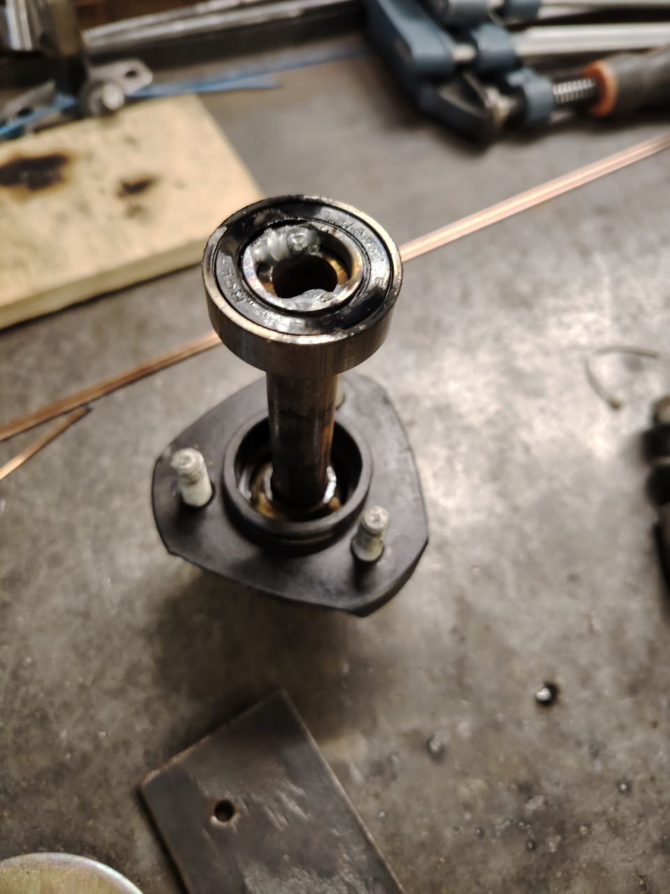 Раскидал заднюю ось. Тормоза не работали, потому что были все в масле. Масло вымыло из двух 206х подшипников, которые стоят "на улице" без всякой защиты. К сожалению оба подклинивали и начали жрать ось. Будем что-то думать.
