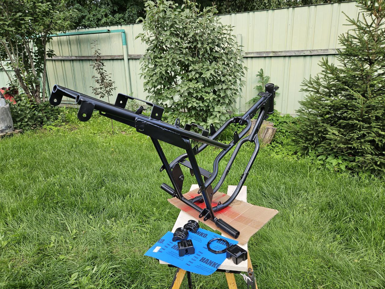 • Поздравляю. Можно сразу приварить на 2 трубы рамы усилитель крепления подставки - отламывается подставка с куском трубы рамы при плотной эксплуатации . Мне арматурину приварили , чуть жёстче стала ходовка . Покрышка задняя лезет 3.50 от Восхода эндурная петрошина . При проставке под моно аморт. и переносе возд. фильтра - иначе протрёт корпус фильтро бокса  - он там снизу полукруглый как крыло . Так никогда не пробьёт обод на яме - резина толстая - проверено .Отличный держак - кроссовая 2,75 - как на коньках, а эндурная 3,50  это вещь.Но это для сильных дуркований под мотокросс, может вам и не надо .