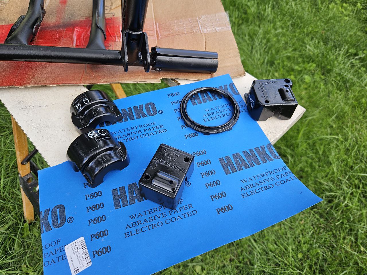 Рычаги тормоза и сцепления, а так же их основы новые. Но они сейчас продаются не крашенные, голый алюминий. Качество то еще, очень грубо очищены следы литья. Немного привел в порядок и покрасил той же краской.