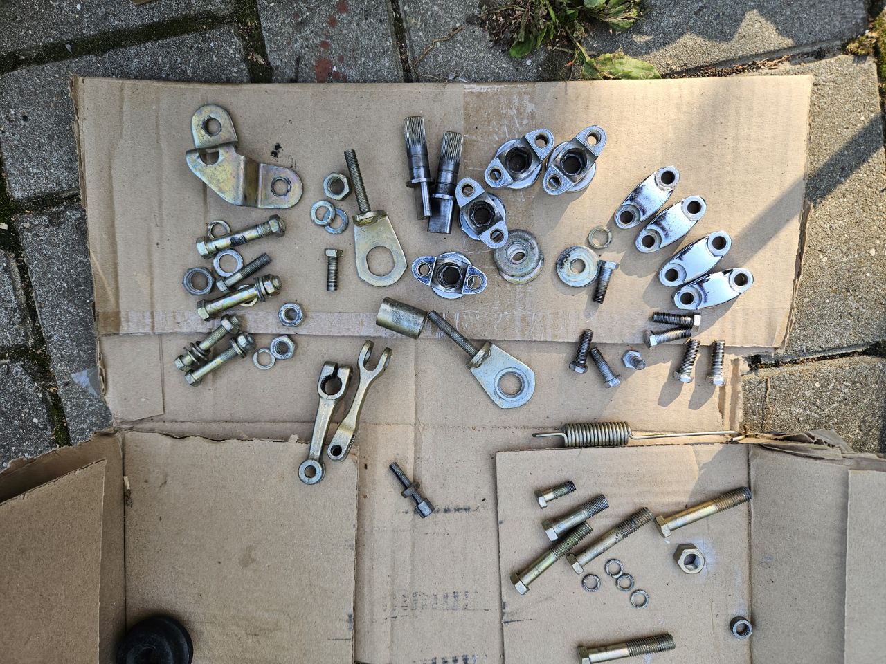 Очень порадовало что почти вся оцинковка сохранилась очень хорошо, с минимальными артефактами в виде ржавчины. Все же хотелось максимально сохранить весь крепеж и детальки. Отдавать в перецинк на момент начала работ абсолютно не планировалось. Единственное, гайки, шайбы решил во многих случаях менять на новые. Сложность в том что найти сейчас крепеж в желтом цинке достаточно проблемно, особенно в размере М6. К тому же оригинальный крепеж очень специфичный по параметрам. Гайки и болты М8 под ключ на 12 и 14, к тому же резьба М8х1, когда современный крепеж с шагом 1,25.