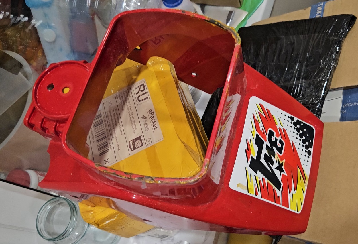 Пластиком в целом я был доволен, буквально две трещины на боковушках, которые несложно было подпаять и усилить изнутри, и несколько ссадин. Наклейки практически без дефектов