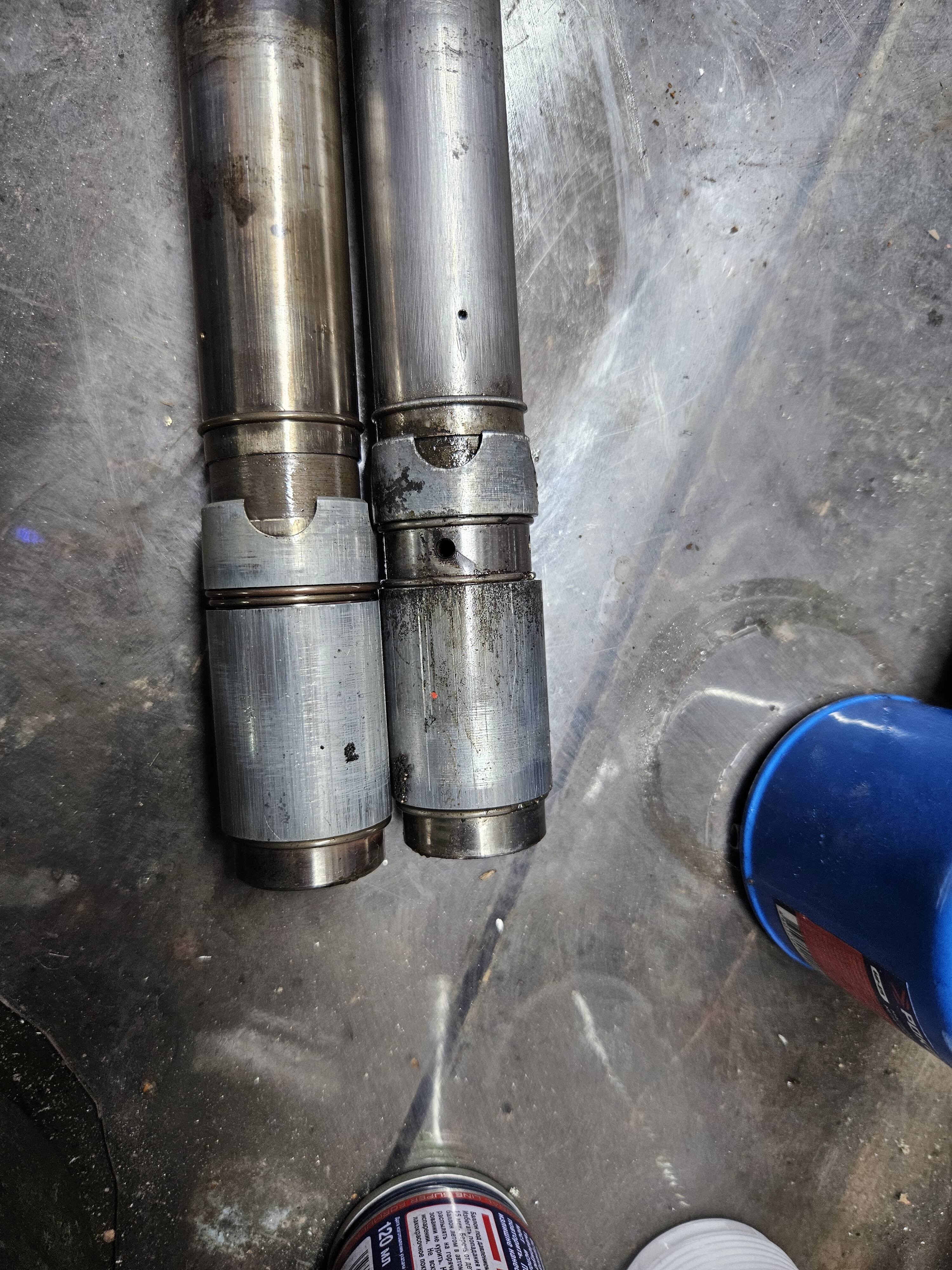 Однако вскрытие показало что внутри все отлично, даже маслице есть. Повреждена средняя часть труб, она же рабочая поверхность от сальников до нижней траверсы.
