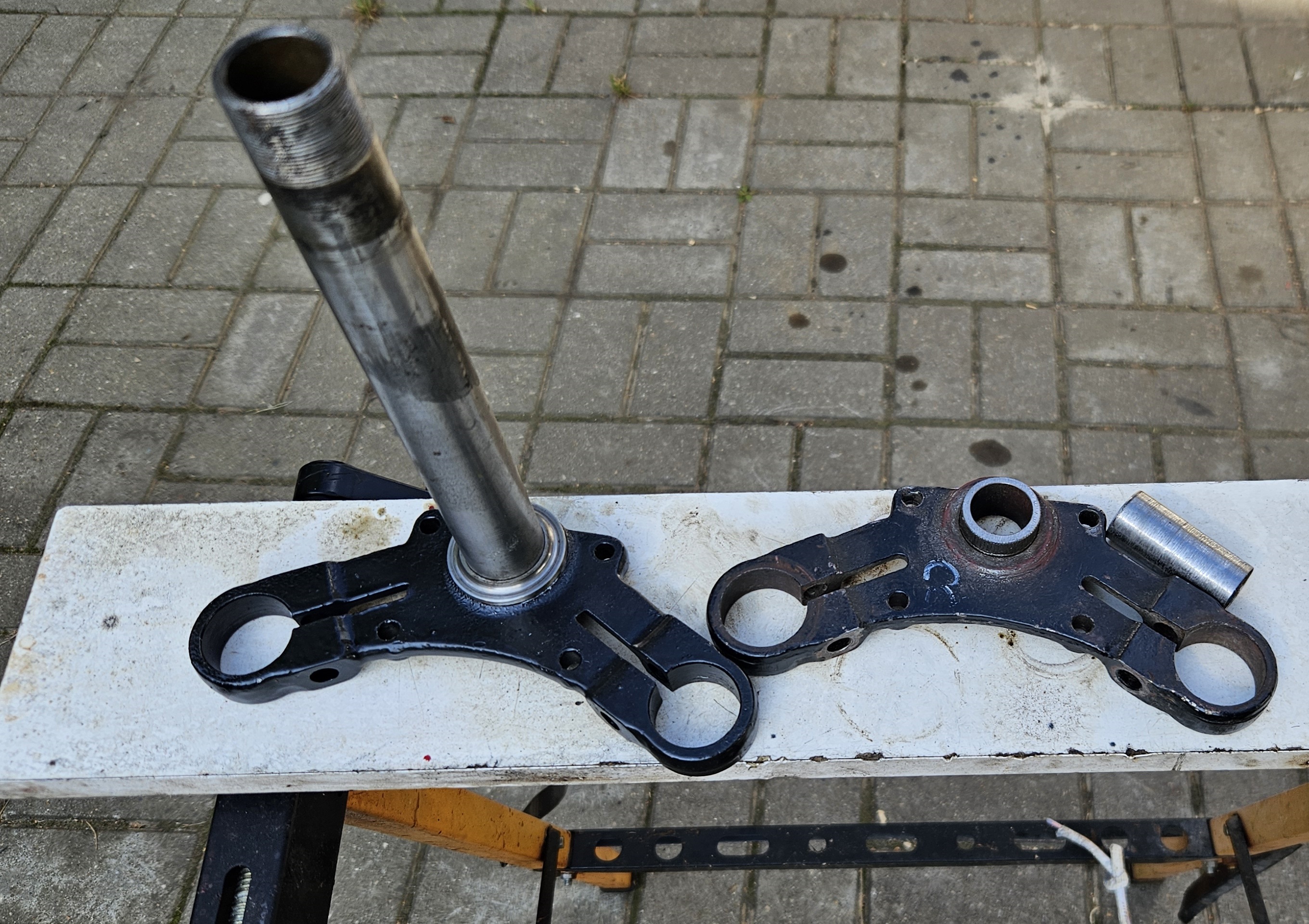 По нижней траверсе начитался на другом форуме, решил тоже продублировать. Купил еще одну, отрезал трубу, оставив около 1 сантиметра выступ. Проточил втулочку, которая соединит две траверсы в зоне центральной трубы.