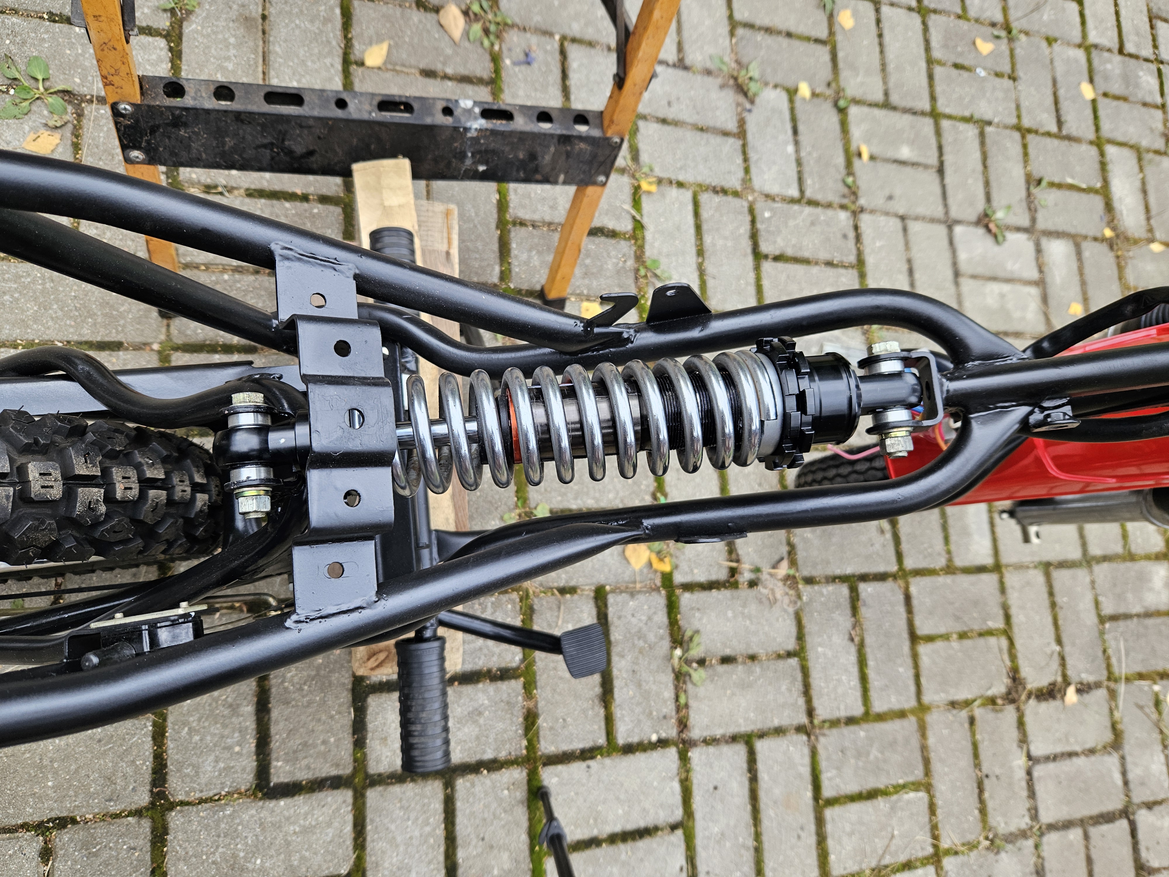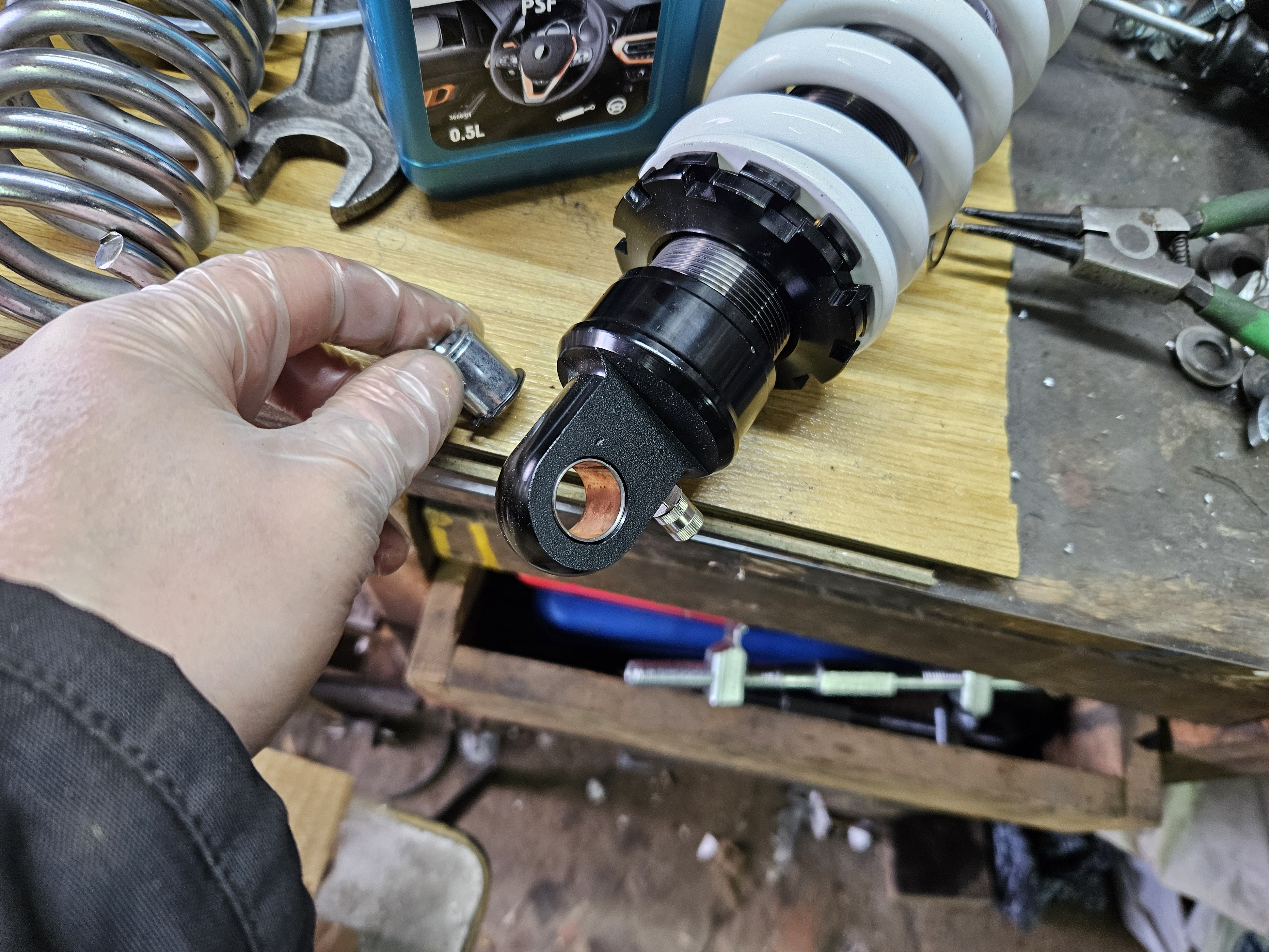 Решено было за основу взять китайский от питбайка, а пружину от оригинального амортизатора.