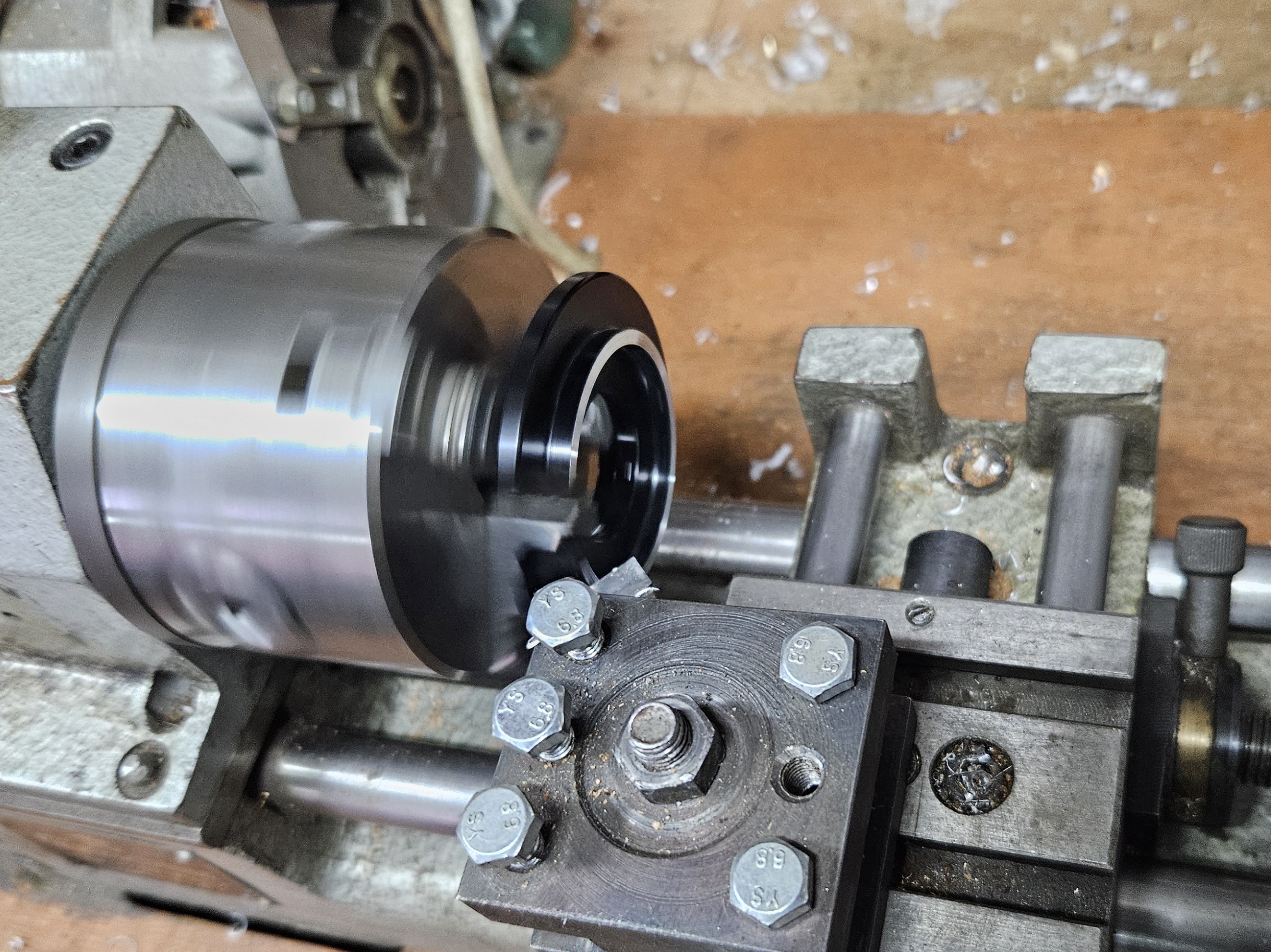 Проточил на маленьком токарнике бортик на фиксаторе и сделал выборки в косых шайбах для плотной посадки и центровки.