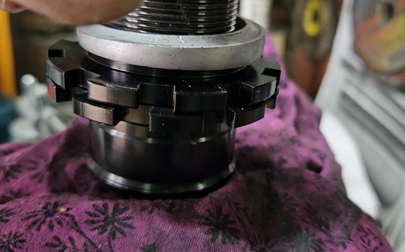 Соответственно ЗиДовскую пружину пришлось ставить с косыми шайбами, но на гайке преднатяга есть бортик, и косая гайка не ложится на плоскость, плюс не центруется.