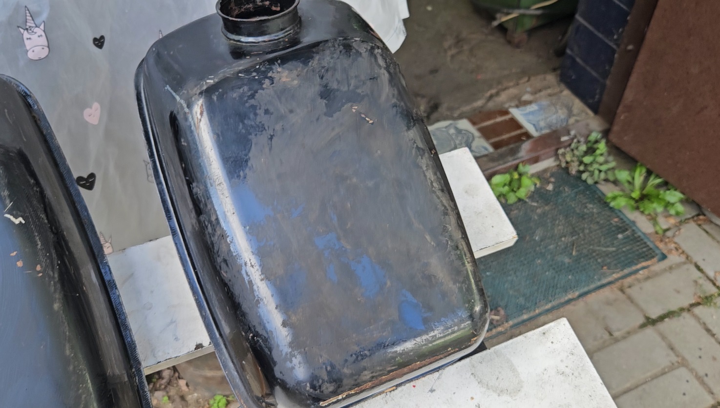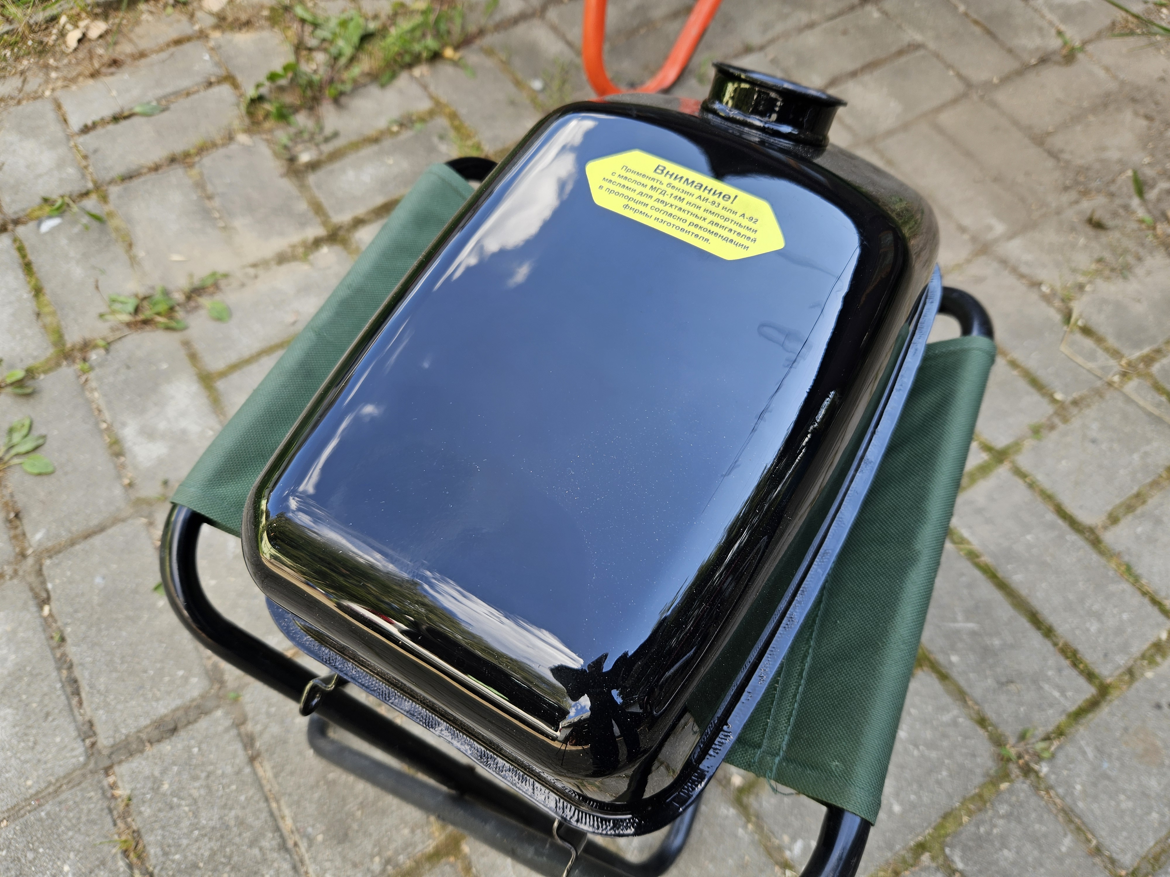 Начал мониторить барахолки и наткнулся на объявление о продаже комплекта бак и сиденье, причем как-то все очень блестело, почти новое при сумрачном свете. Цена была не подарок, но решил брать, к тому же по сиденью моего мопеда есть нюансы. Съездил после работы куда-то под Домодедово, в полутьме забрал детали особо не глядя и это была моя ошибка.