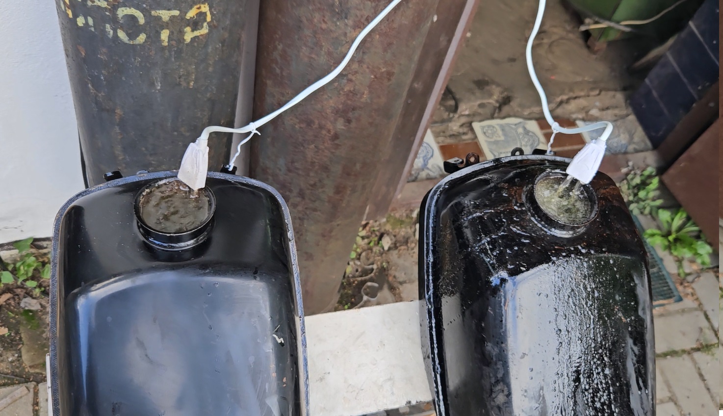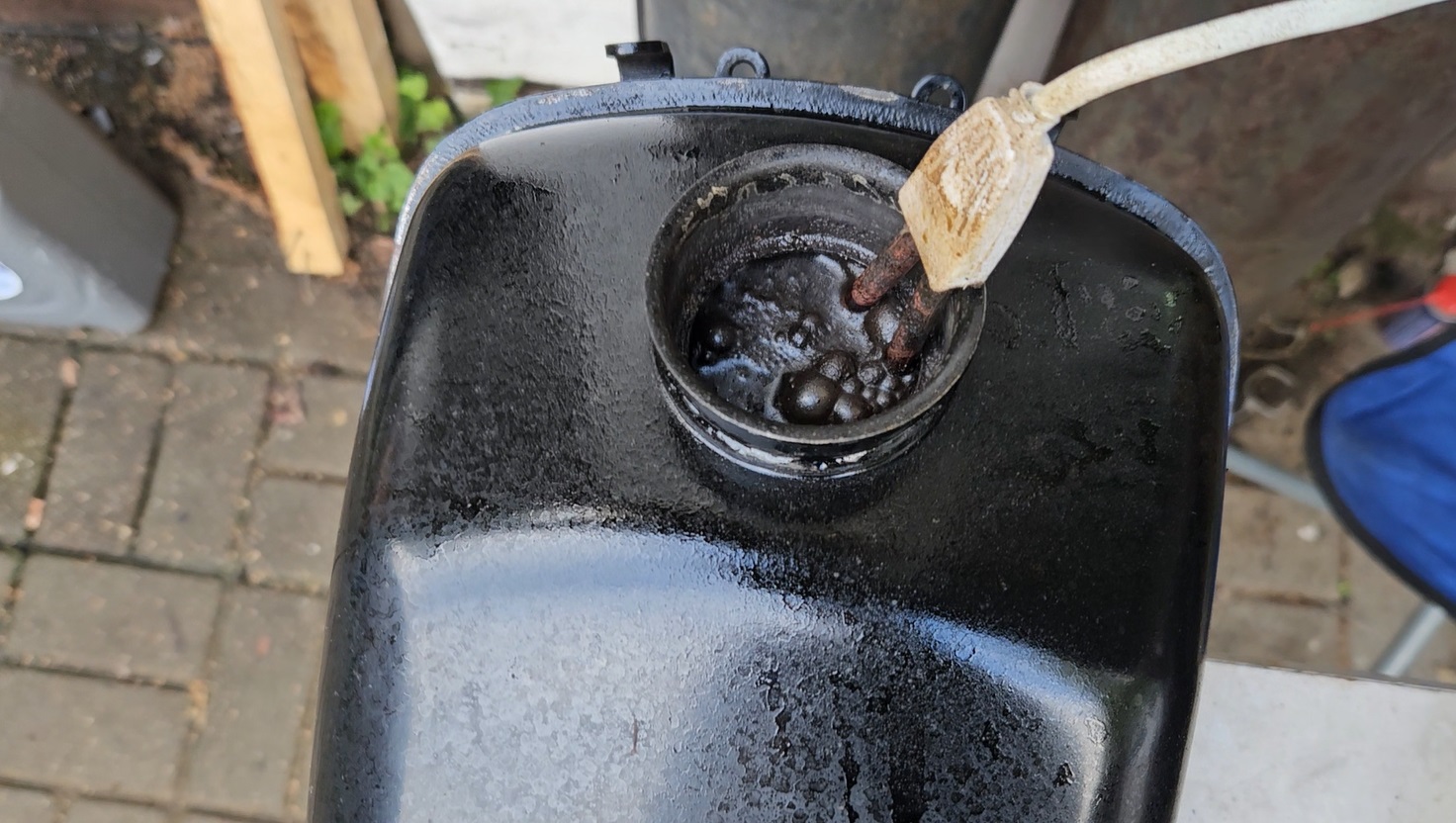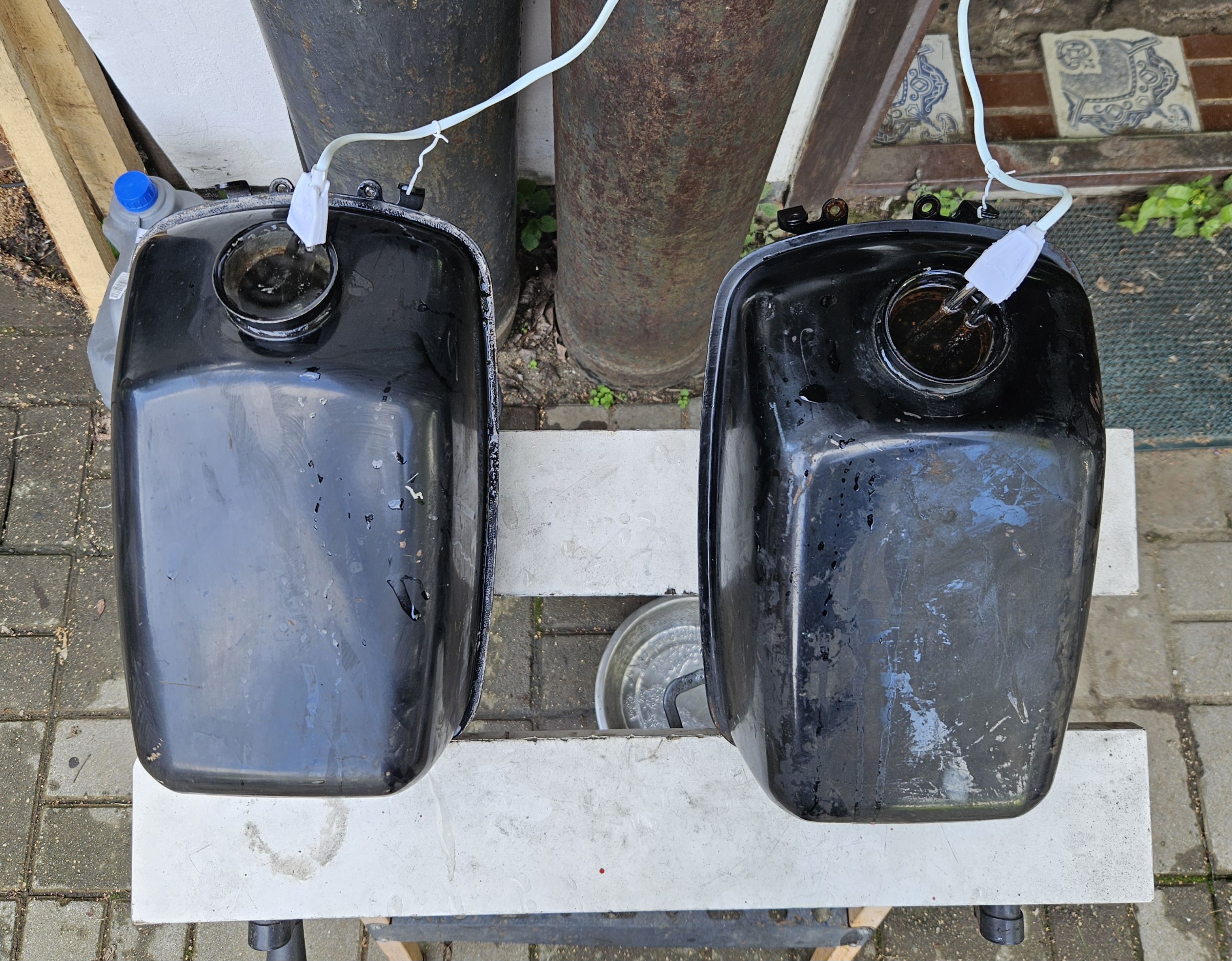 Результат порадовал. Это мой бак, внутри чистота. Обязательно нужно погасить реакцию промыв внутри несколько раз раствором питьевой соды. Потом тщательно продуть компрессором и просушить. Я еще маслица залил и разболтал по стенкам. Внутрянка сохраниласть в идеале спустя пару месяцев.