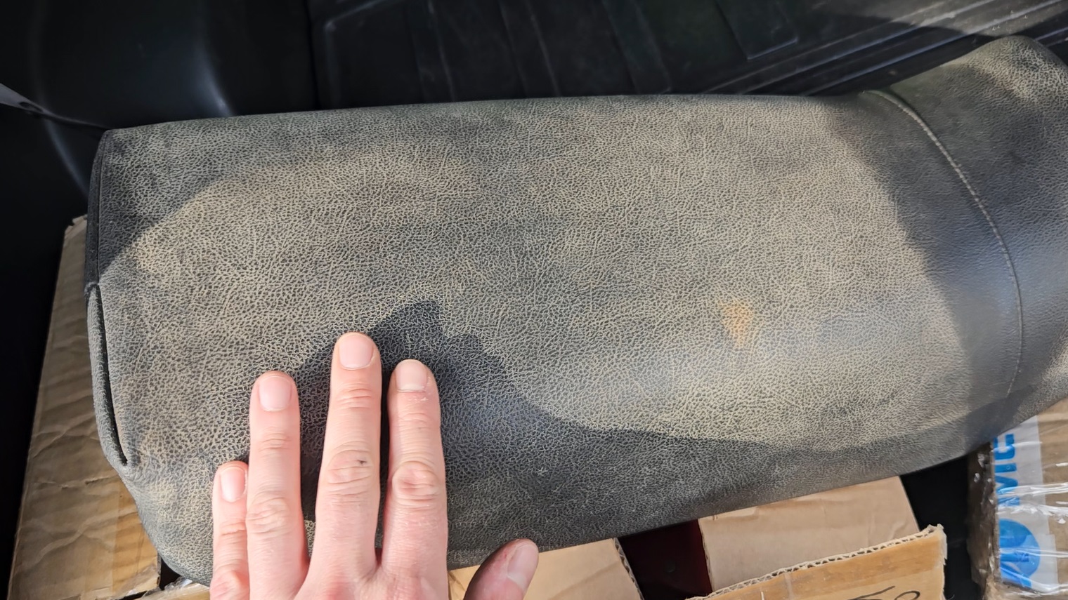 WD40 испарился, предстала серая поверхность сидушки. Грязь въелась в фактуру кожзама.