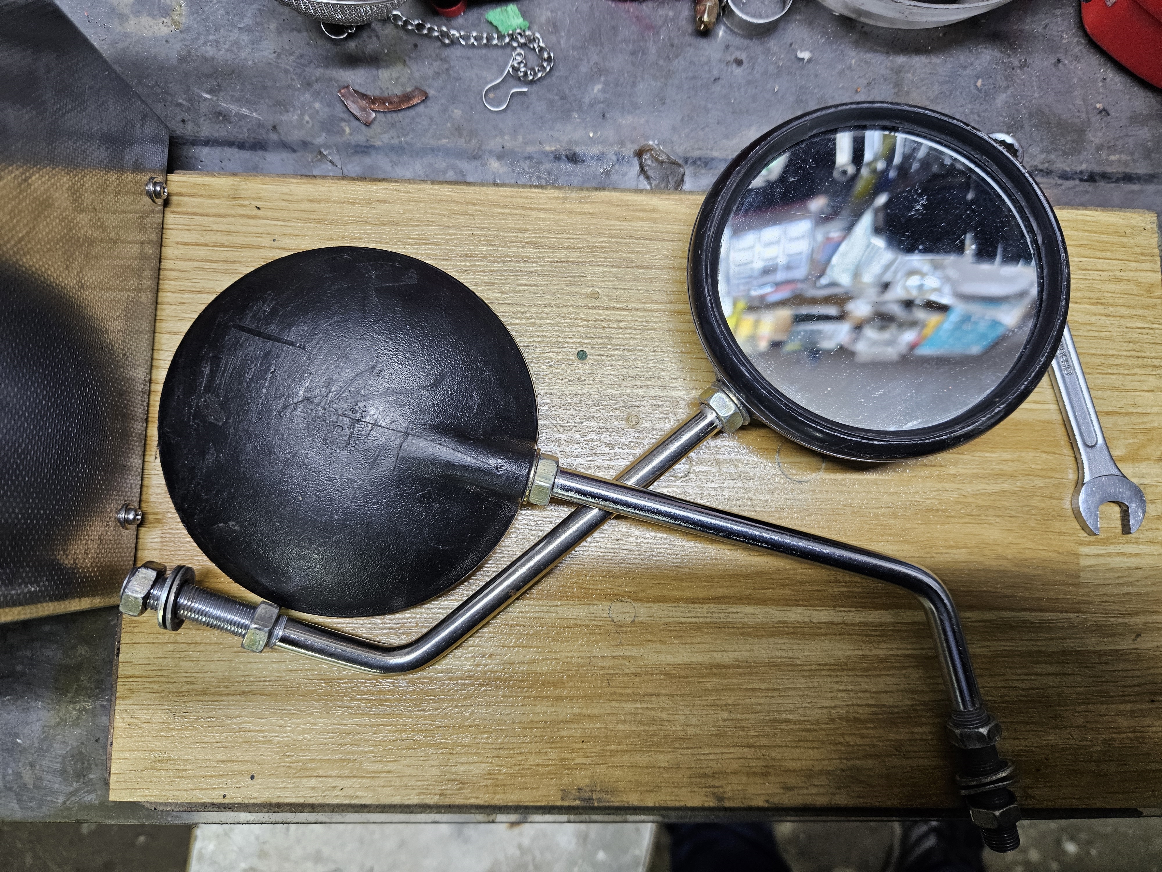 Нашел пару оригинальных зеркал за какие-то ненормальные деньги - дефицитная позиция, продавцы пользуются. Состояние среднее, корпуса с большим количеством следов эксплуатации. Но стойки, зеркальный элемент и крепеж в хорошем состоянии.