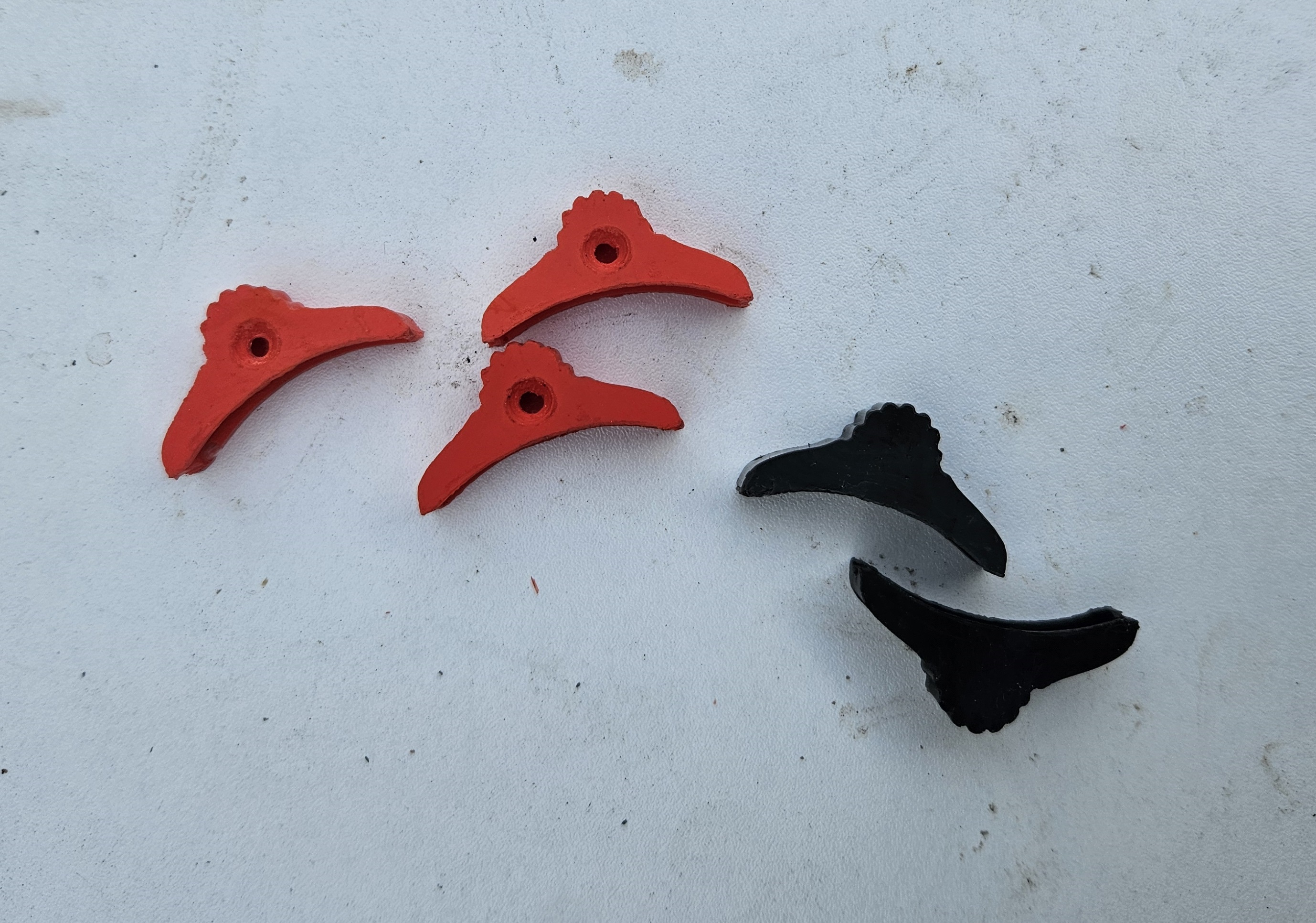Решил рычаги делать в оригинал, не стал покупать новодел, пусть и симпатичные, но немного другой конструкции. Еще в прошлом году были куплены 2 комплекта рычагов на Стрижи, но некрашеные и плохо обработанные алюминиевые отливки. До Стрижей неизвестно когда дойдут руки, решил использовать один комплект на Пилоте. Окрасил рычаги и кронштейны.