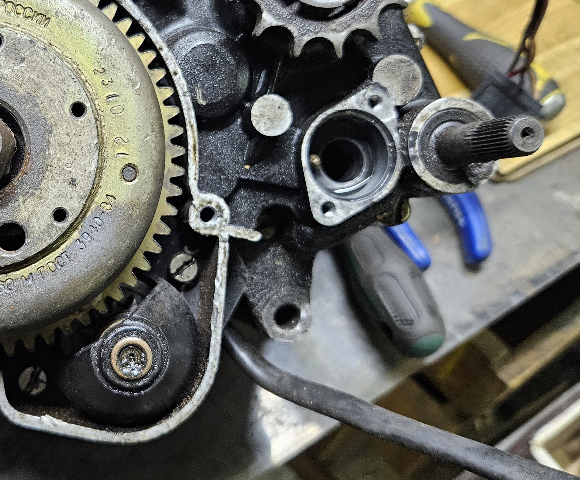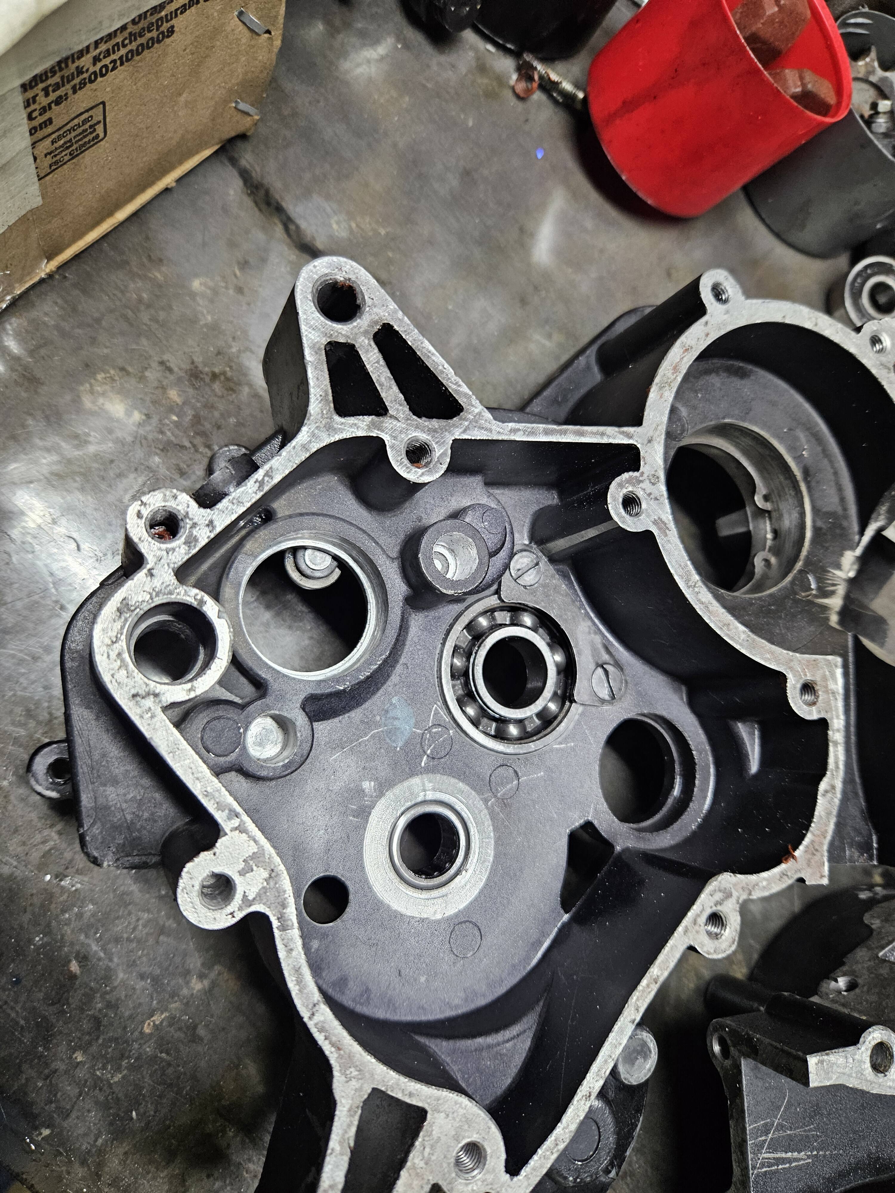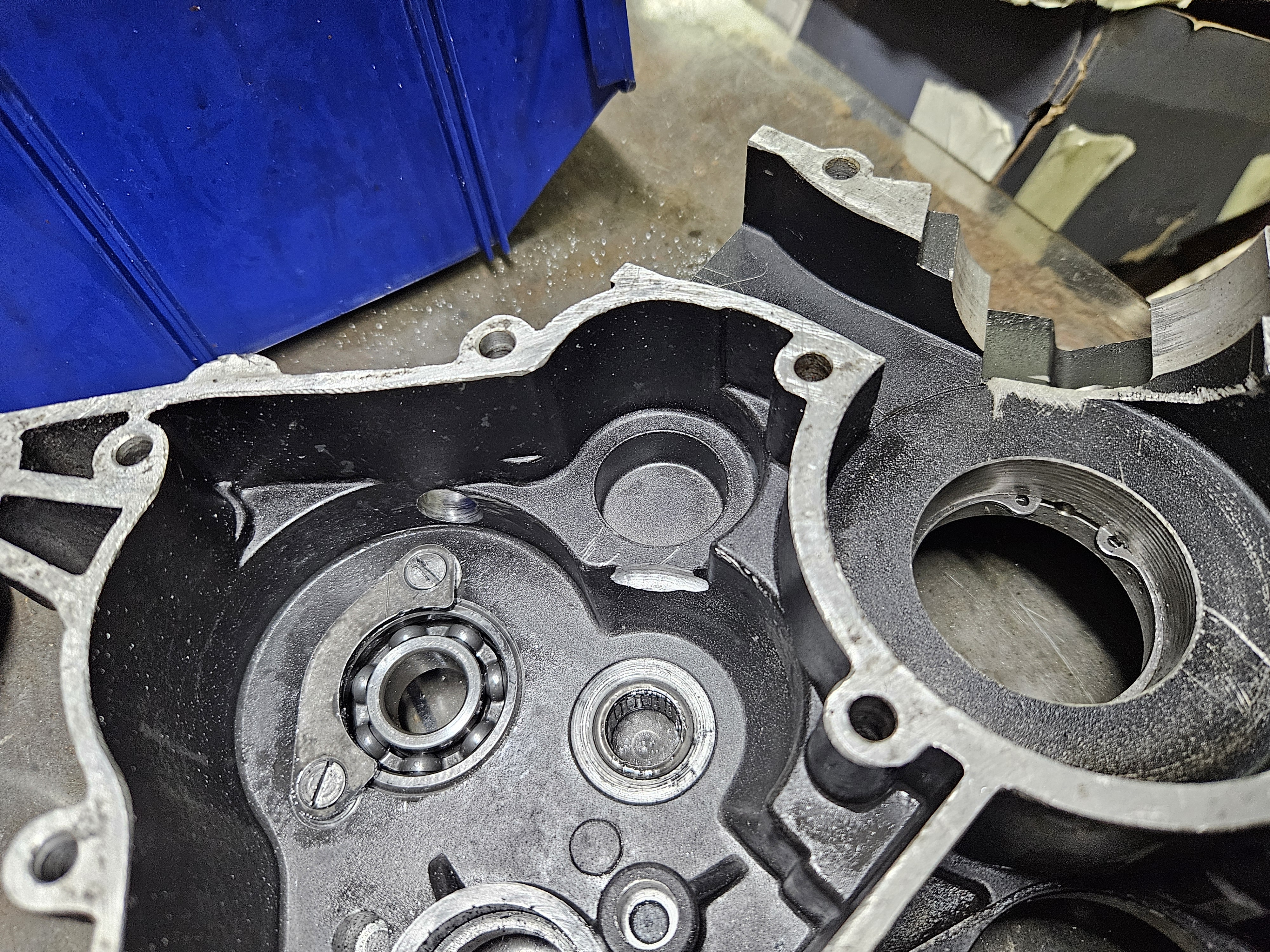 • Разобрал мотор. Из "интересного", сальники коленвала в трещинах и смутило что торчат из посадочных сильно. Второй момент - закрытые подшипники в коробке, подозреваю так не должно быть.