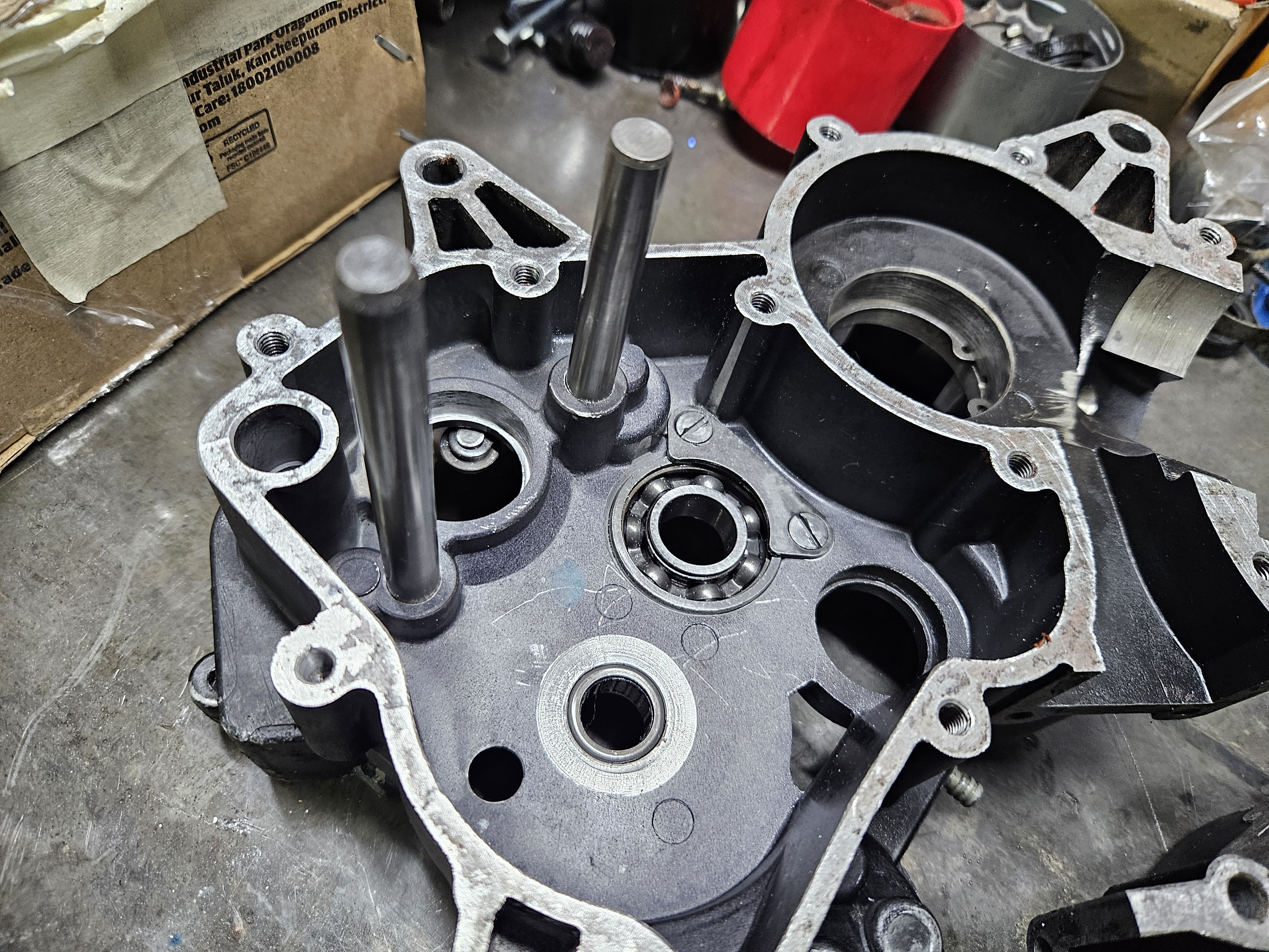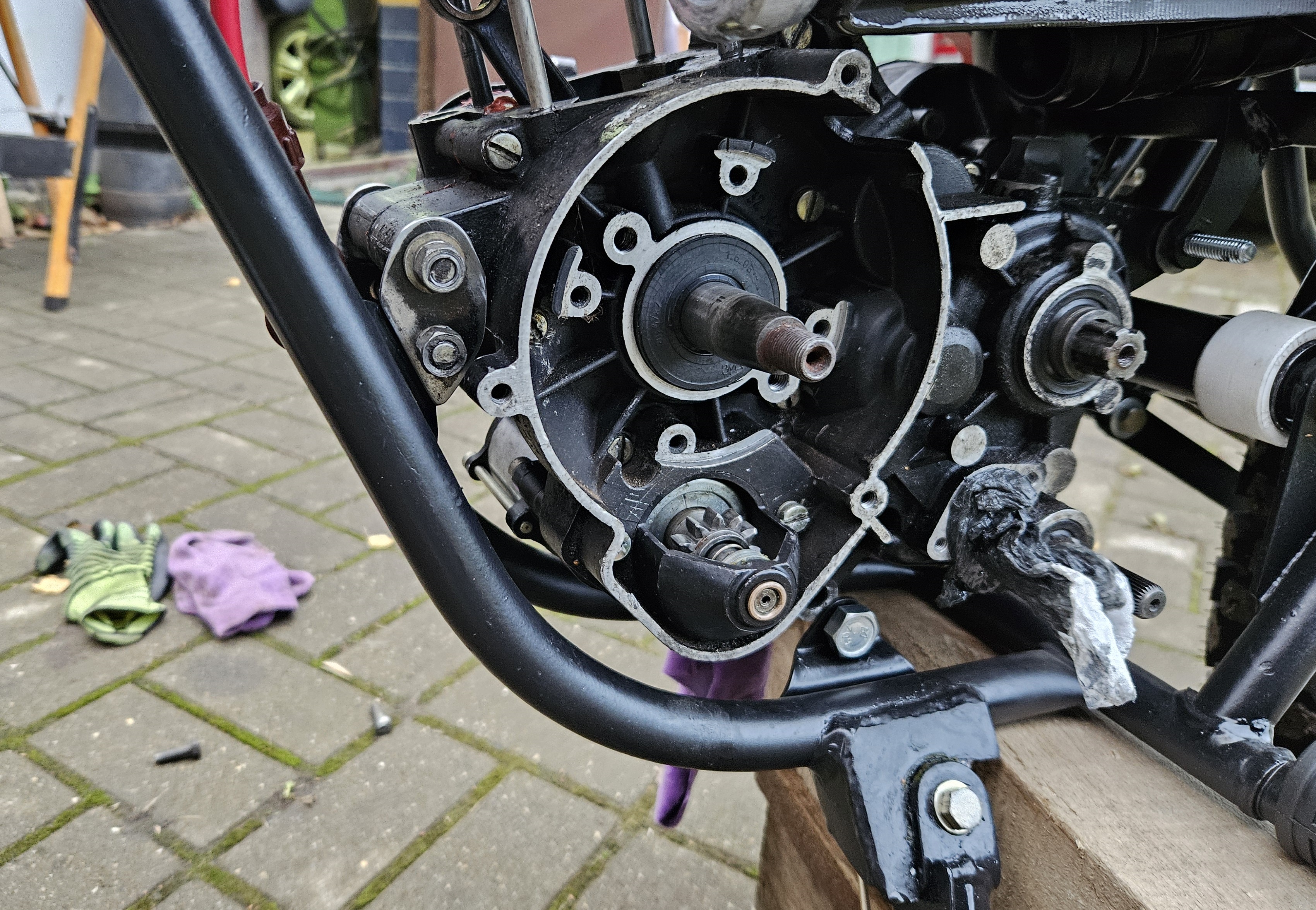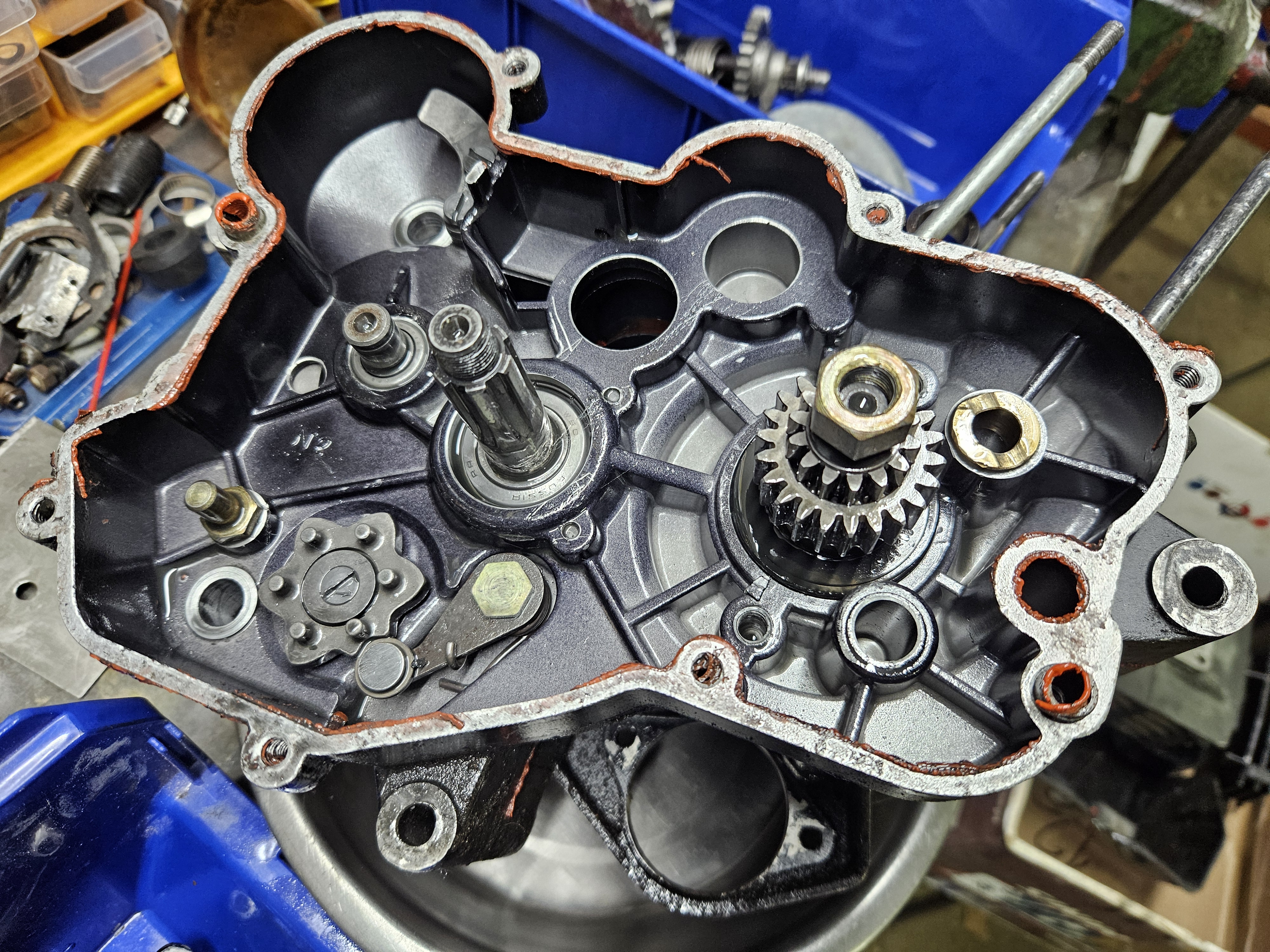 • Разобрал мотор. Из "интересного", сальники коленвала в трещинах и смутило что торчат из посадочных сильно. Второй момент - закрытые подшипники в коробке, подозреваю так не должно быть.