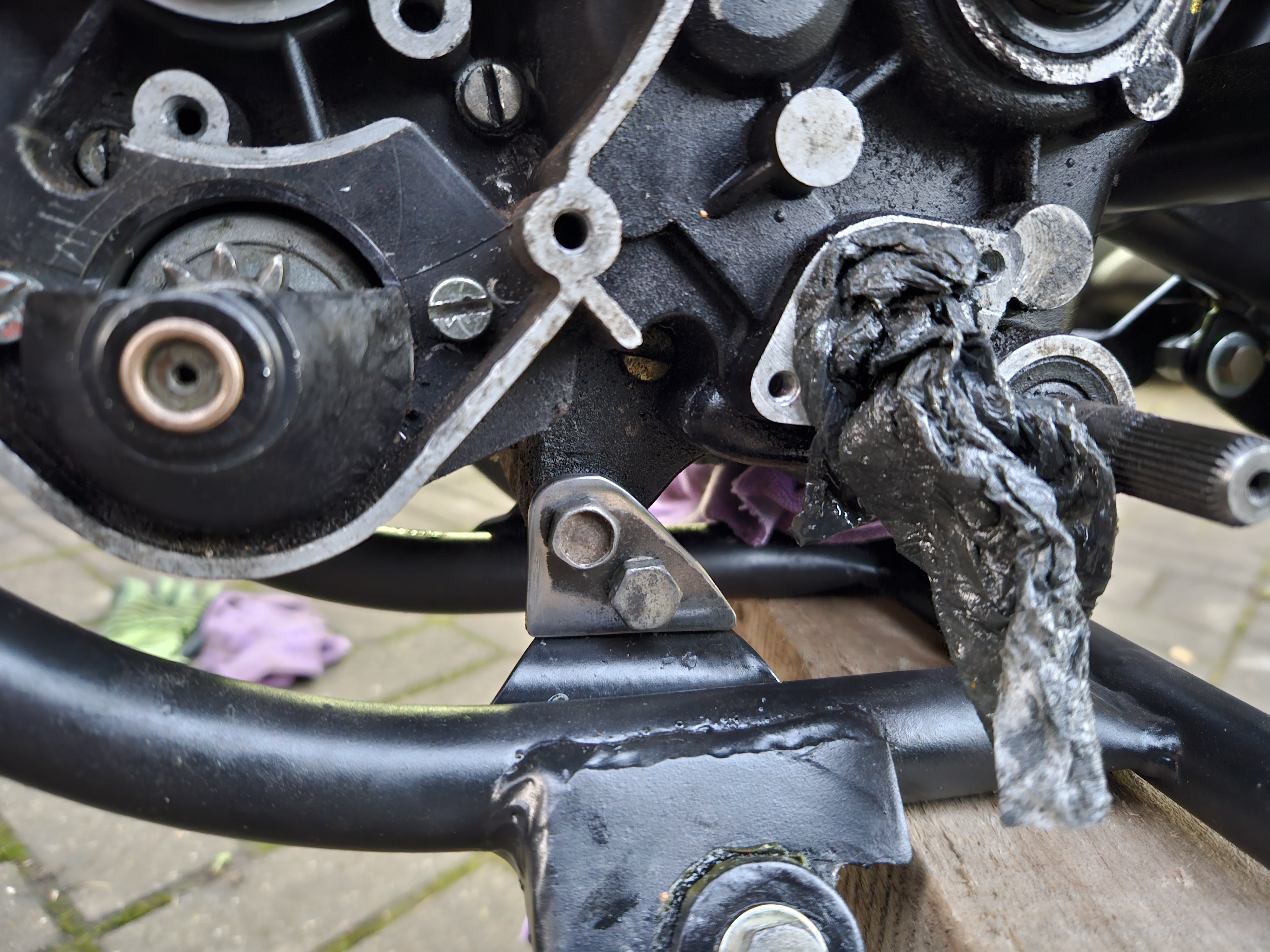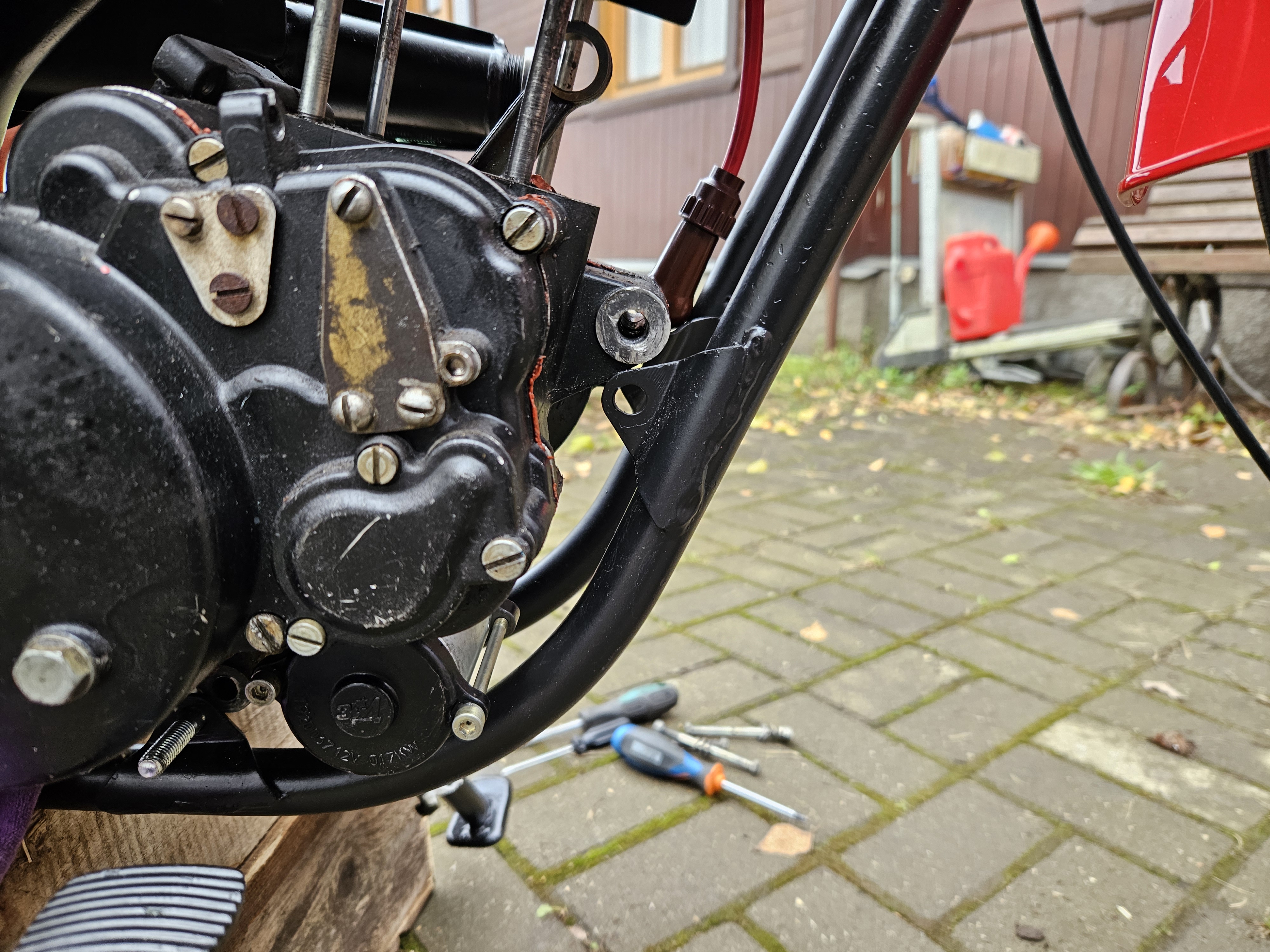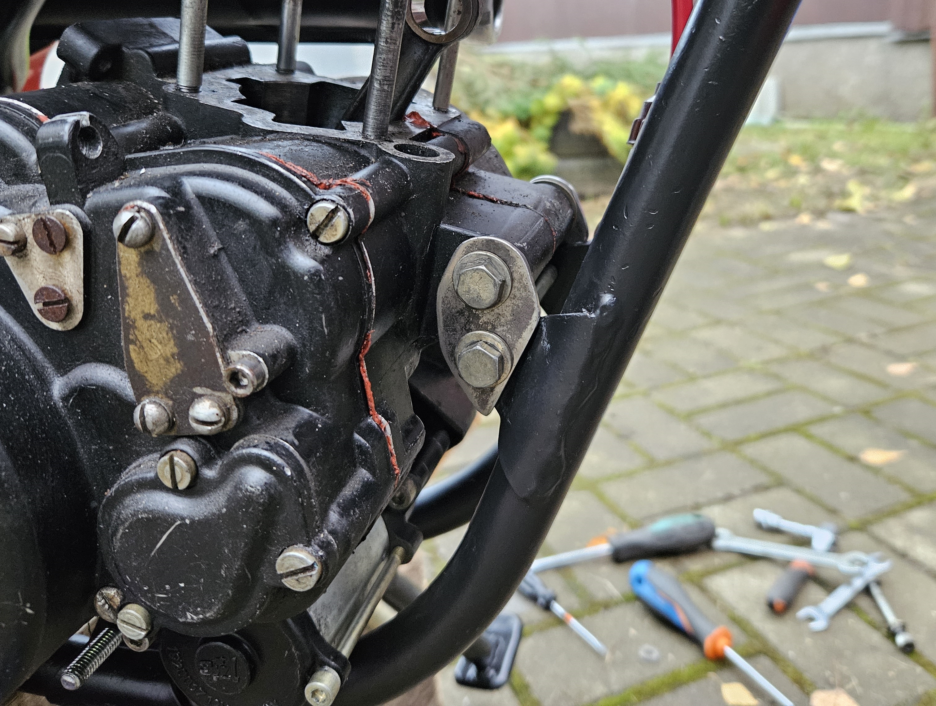 Так они выглядят установленными. С левой стороны получился нюансик - не удобно засовывать гайку с шайбами, мешается отливка на картере (ракурс на фото не удачно показан, но проблемка есть).