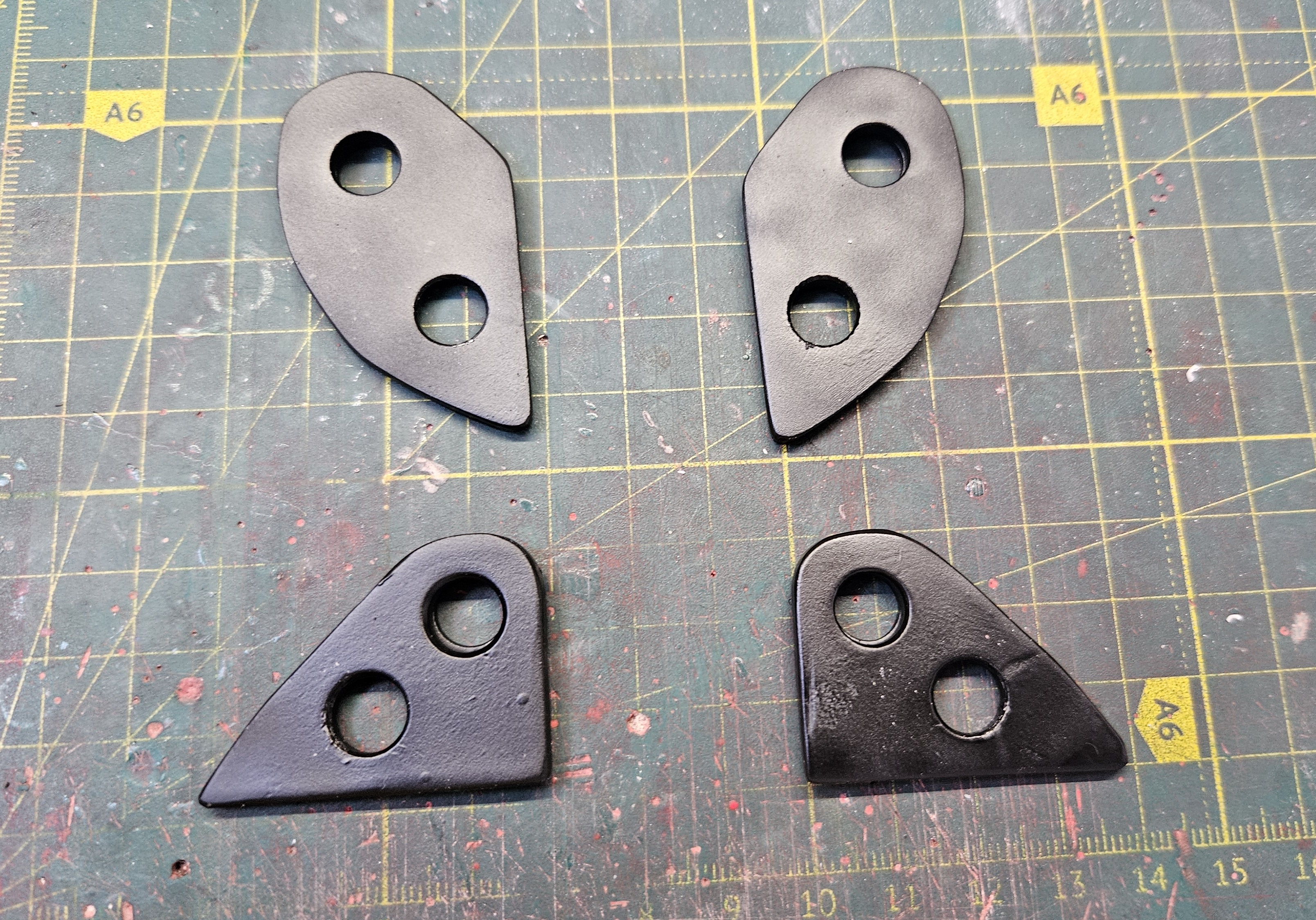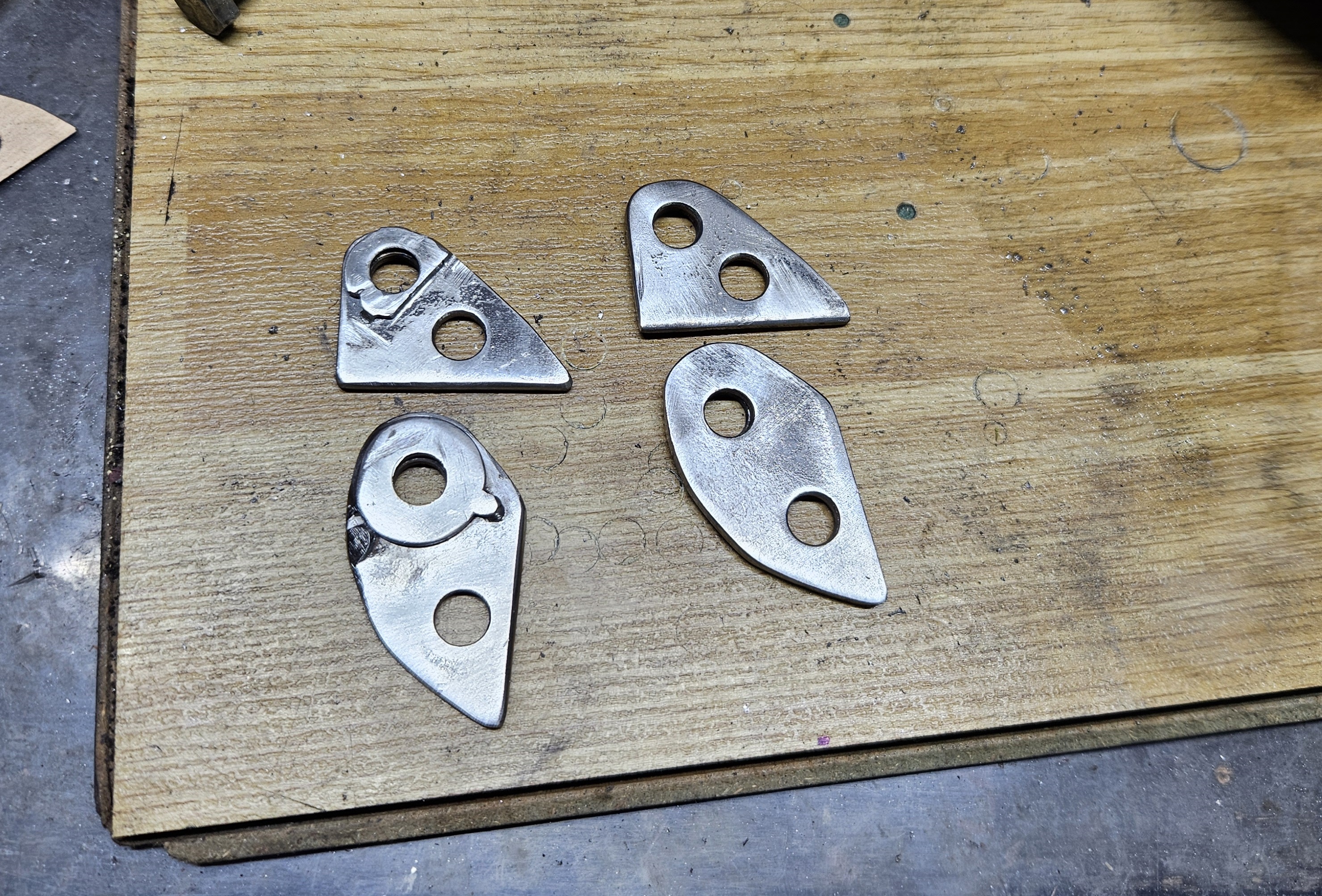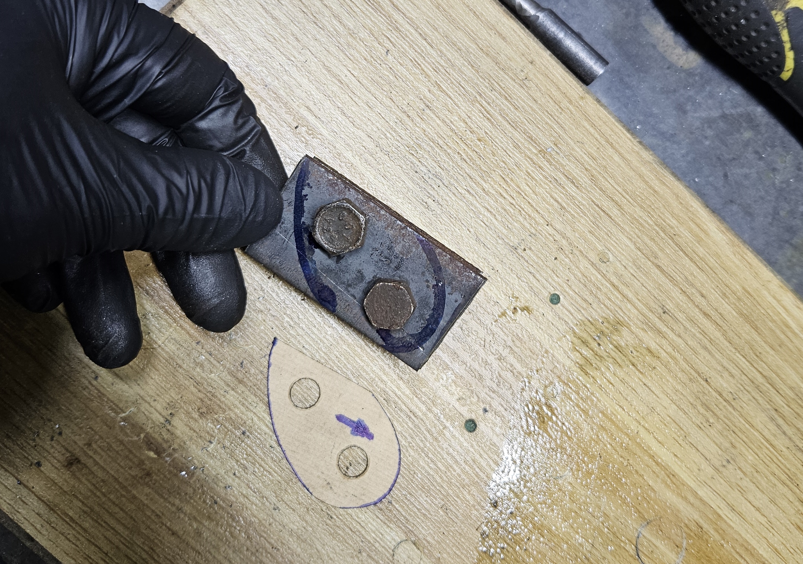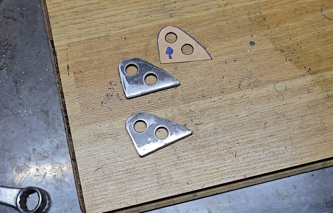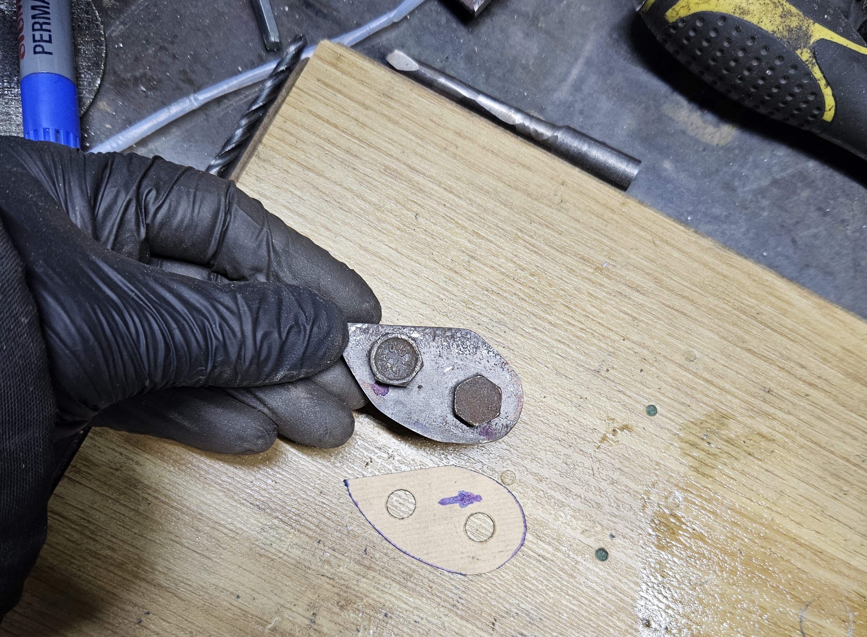 Сложил две пластины вместе, просверлил на сверлильном станке отверстия и болтами через них стянул обе детали для последующего придания формы болгаркой.