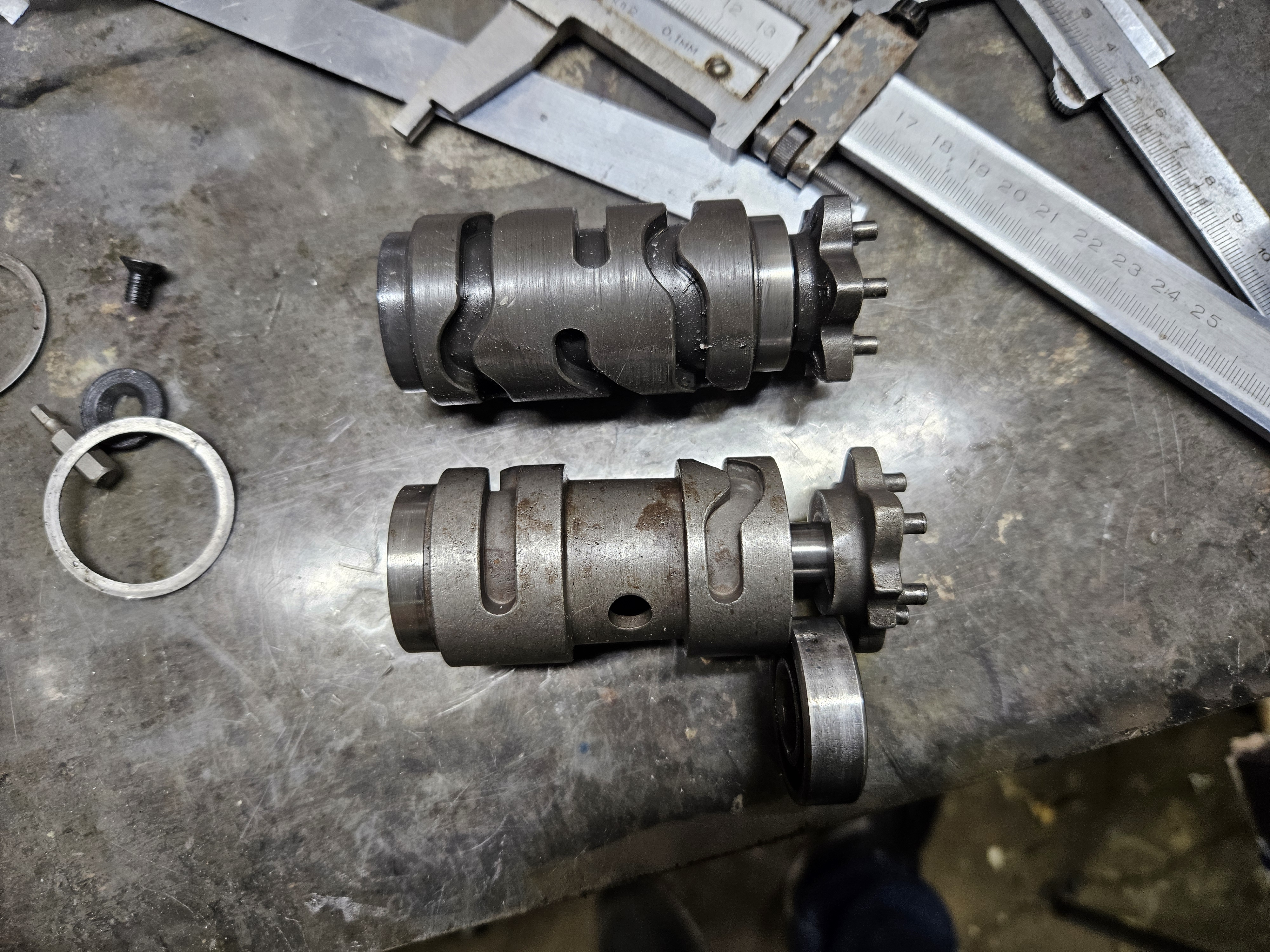 Далее немного придется доработать копирный вал. Со стороны фиксатора у Пилота стоит подшипник, а на Дерби подшипник не предусмотрен, вал так же вставляется в картер как и с противоположной стороны. Вал входит, Но туговато, нужно снять несколько соток либо с вала либо в самом отверстии.