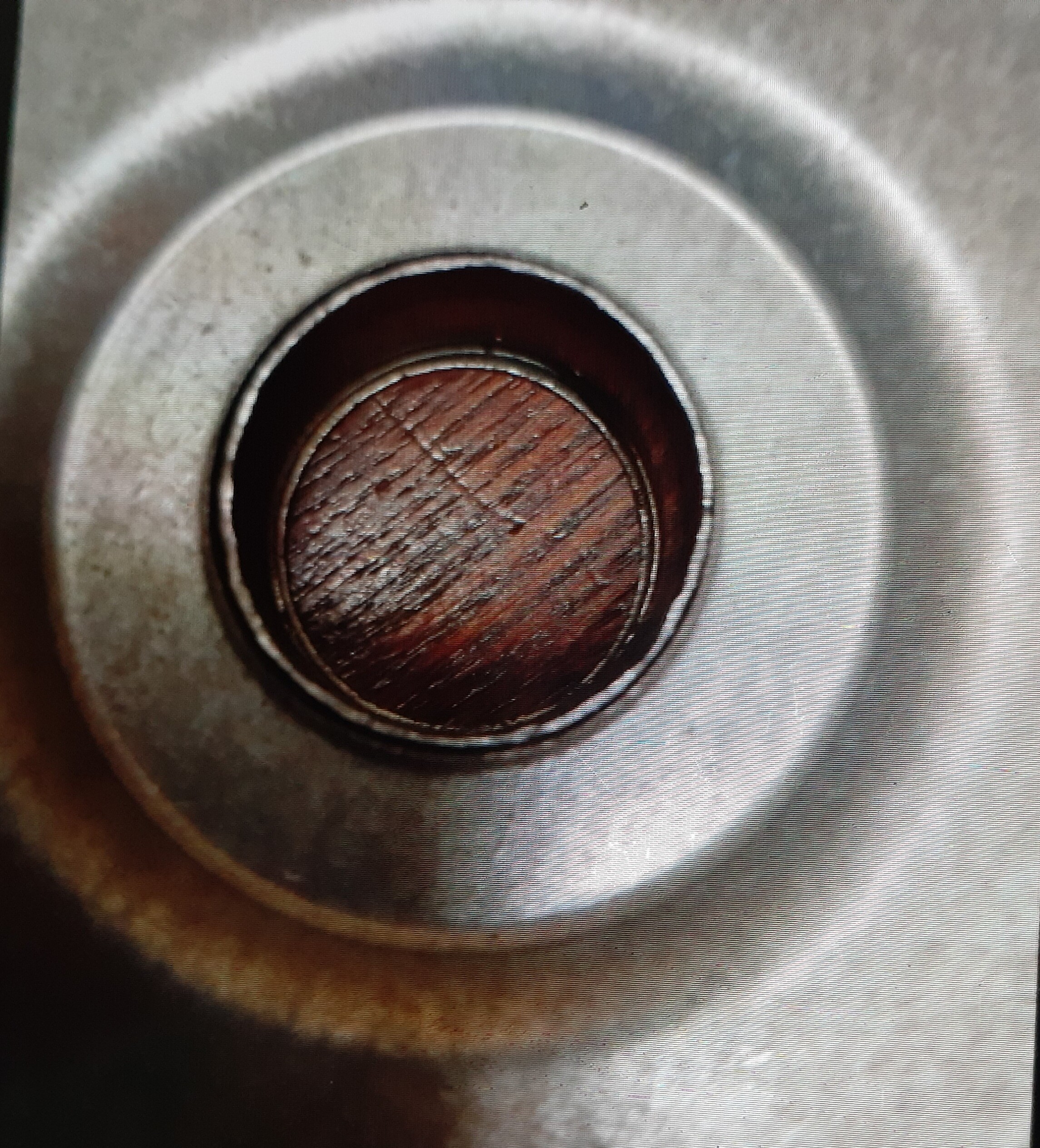 Обрезал отбортовку и... бл, самым удивительным образом опять всё подошло. Осталось найти трубу на 110 мм что бы завальцевать край. Разобрать батарейку, достать угольный электрод и можно им припаять резьбу к жестянке медью. Поставить на заклёпки .